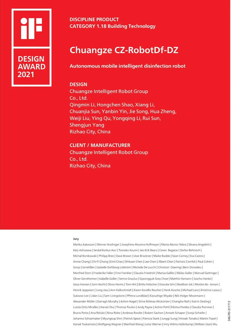 “好的設(shè)計賦予產(chǎn)品靈魂”。今年iF設(shè)計獎共有來自52個國家的近10000件作品參賽,評選過程競爭十分激烈,入選2021年iF設(shè)計獎的移動式消毒機(jī)器人企業(yè)共有兩家:中國的創(chuàng)澤集團(tuán)和丹麥的Blue Ocean Robotics。創(chuàng)澤集團(tuán)榮獲此次獎項(xiàng)表明其創(chuàng)新產(chǎn)品設(shè)計和品質(zhì)獲得了國際認(rèn)可,也是對創(chuàng)澤集團(tuán)AI應(yīng)用創(chuàng)新引L力的肯定。 未來,創(chuàng)澤集團(tuán)將繼續(xù)深耕探索,以前瞻設(shè)計理念、出色產(chǎn)品引L行業(yè)發(fā)展!